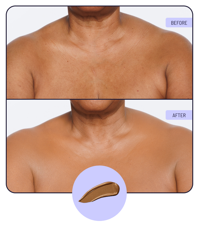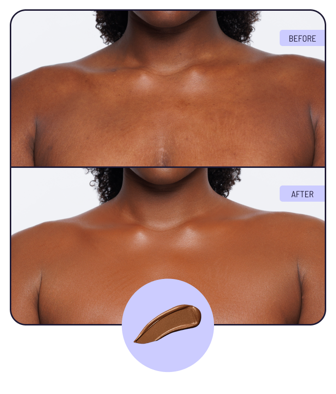 Our tri-effects technology is what makes Body Coverage Perfector so unique: when used as directed on clean, oil-free skin, you’re able to achieve a transfer-resistant finish that won’t budge or smudge.
