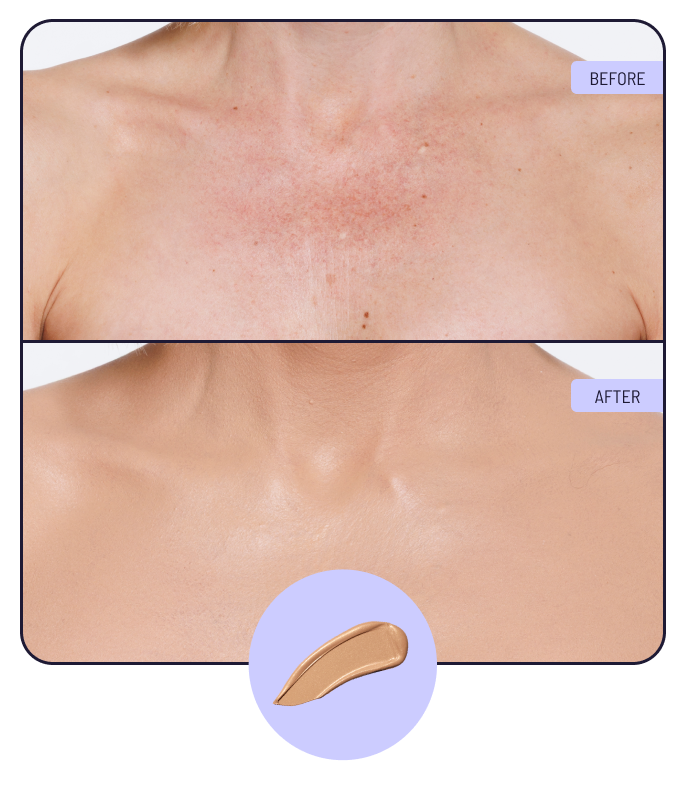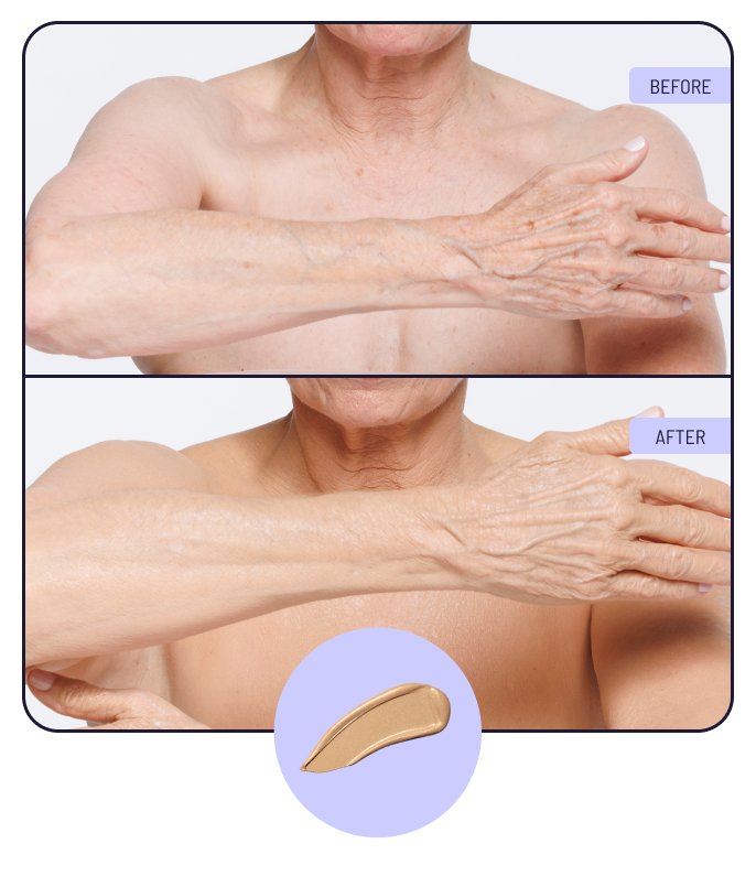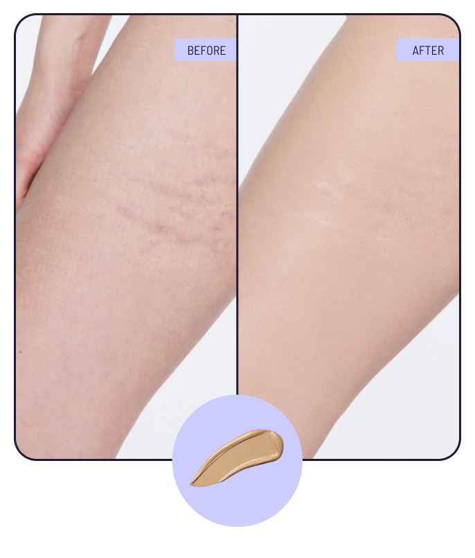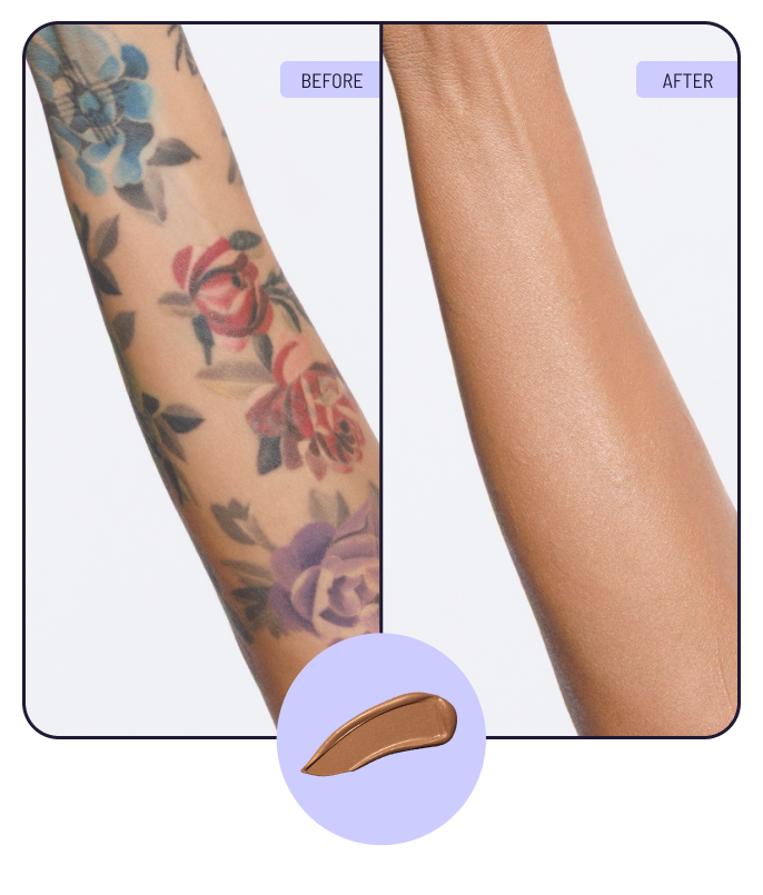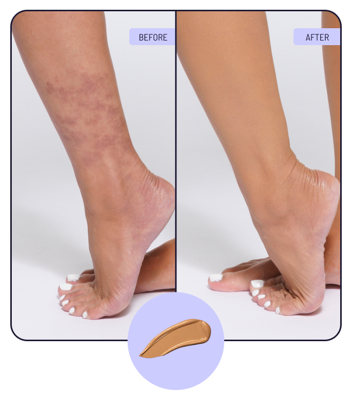 Immediately evens out skin tone while concealing spots, scars, veins and tattoos.