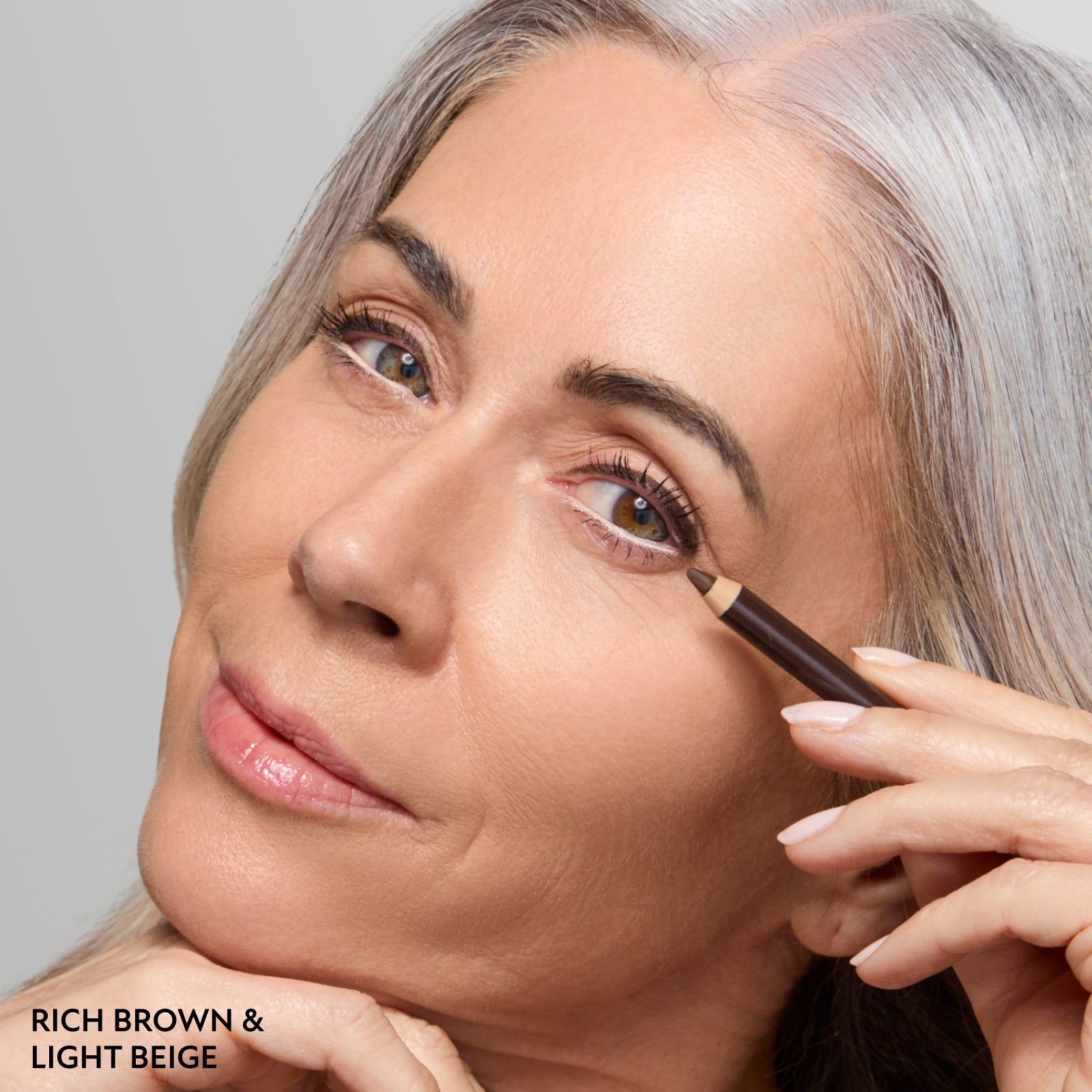 PRO TIP: Use shade Light Beige for light to medium skin tones or Warm Beige for tan to deep skin tones to draw a thin line along the waterline to instantly help your eyes look more awake, open, and bright.
