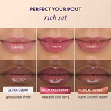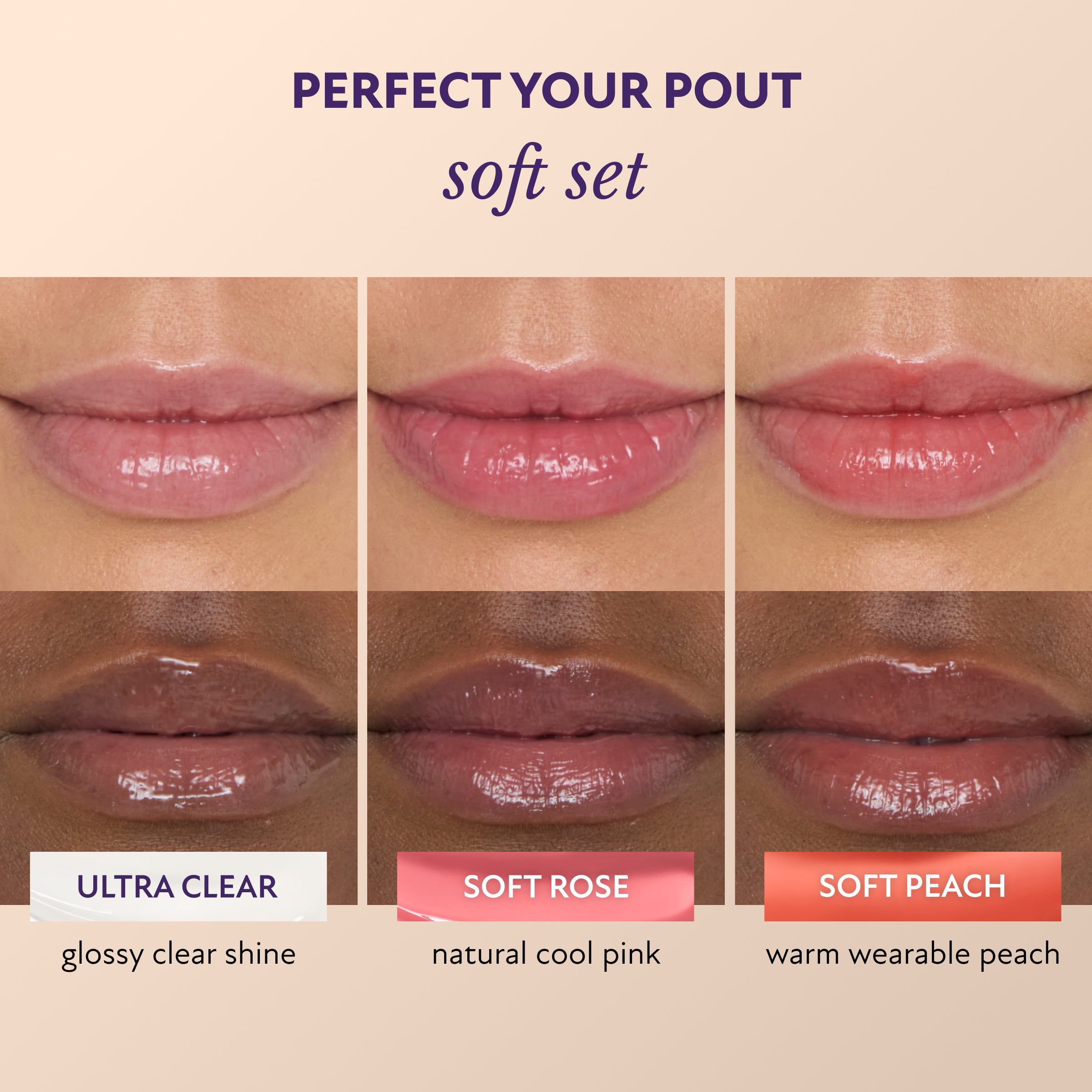 - 3 Pout Perfector Shades nourish lips with buildable glossy color