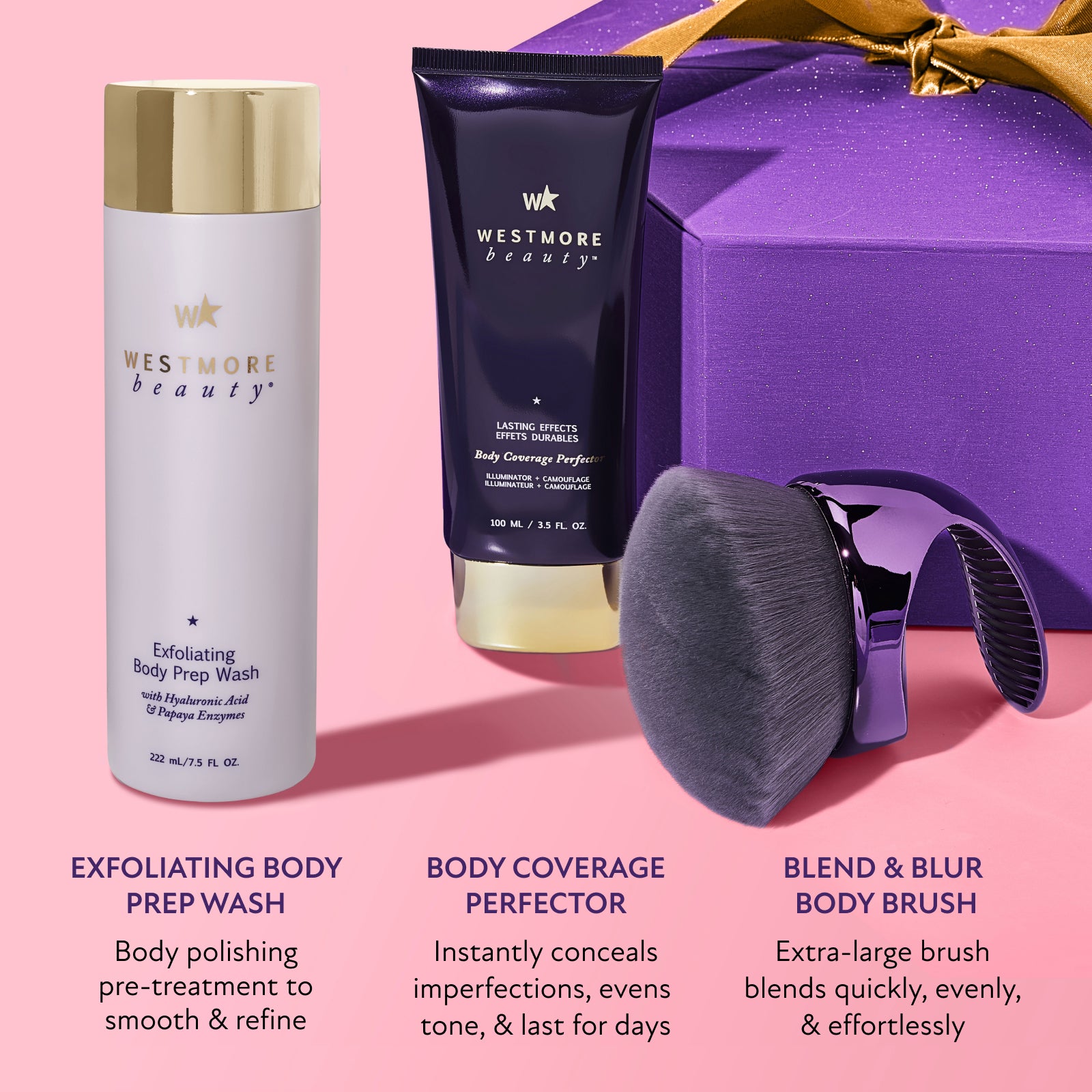 The Exfoliating Body Prep Wash removes dull, dry skin all over your body. The gently foaming, oil-free formula helps ensure that Body Coverage Perfector goes on smoothly and won't transfer.